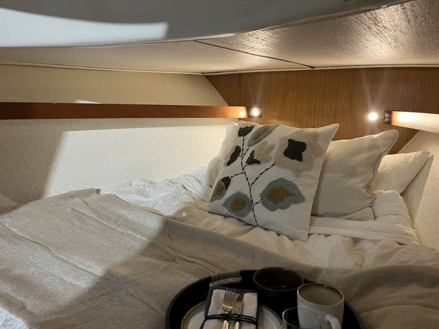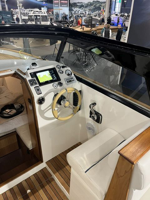 Bow searchlight, Cabin top searchlight, Shore power with cable, 220v socket in the cabin, heating in Cabin. Bow thruster, Annala Finnish woven Tara quality fabrics on cushions.
